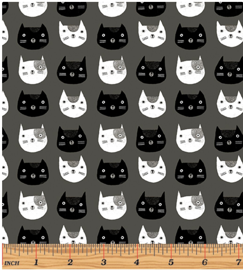 Benartex Cosmo Cat Heads - Charcoal Fabric