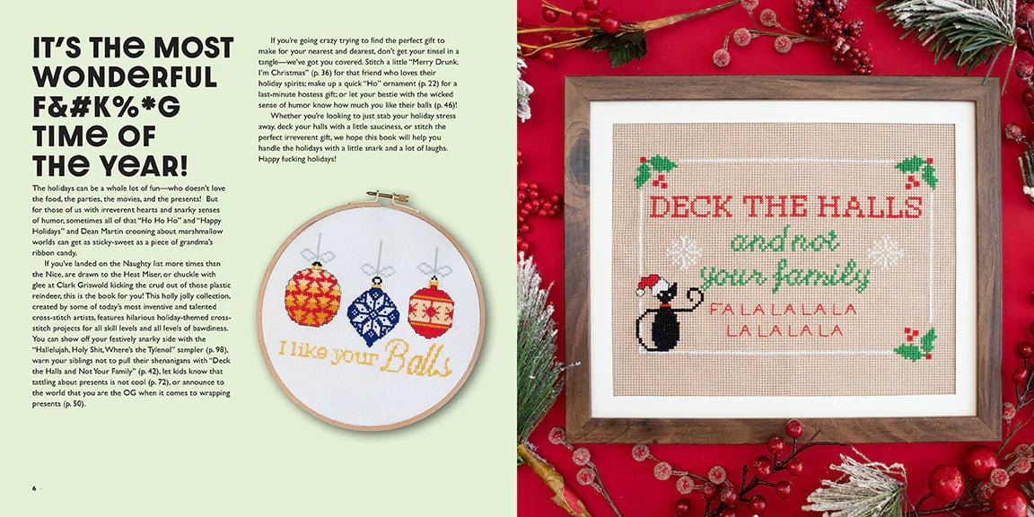 20 FESTIVE PATTERNS: Festive As F*ck includes 20 hilariously sassy patterns to help ease the stress of the holiday season