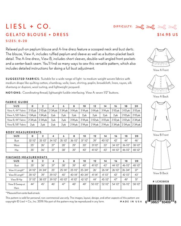 Relaxed pull on peplum blouse and A-line dress feature a scooped neck and bust darts. The blouse includes ruffled peplum and sleeve as well as a button placket back detail. The A-line dress includes short sleeves, double welt angled front pockets and a center-back seam.