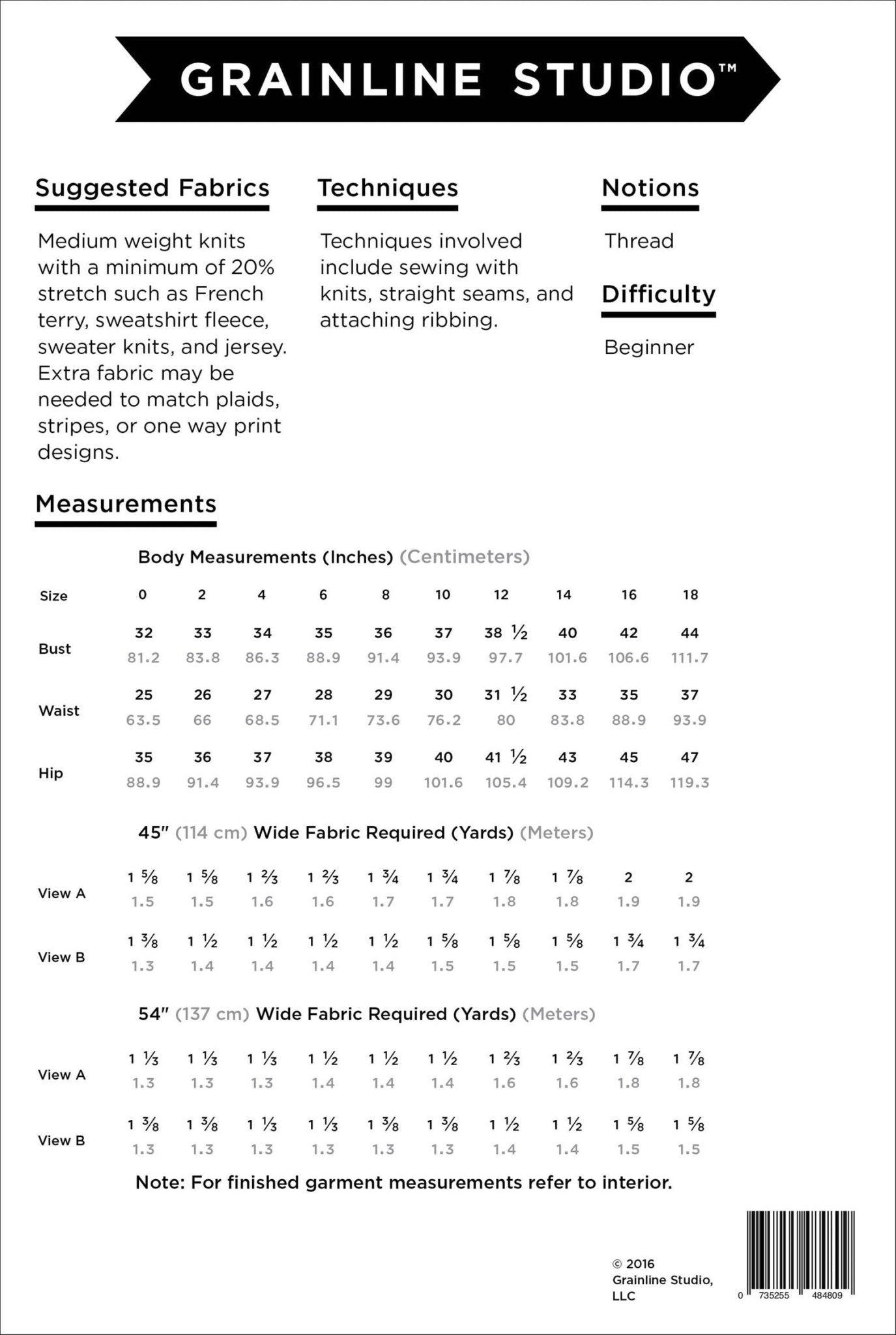 Recommended Fabrics: Medium weight knits with a minimum of 20% stretch such as French terry, sweatshirt fleece, sweater knits, and jersey.