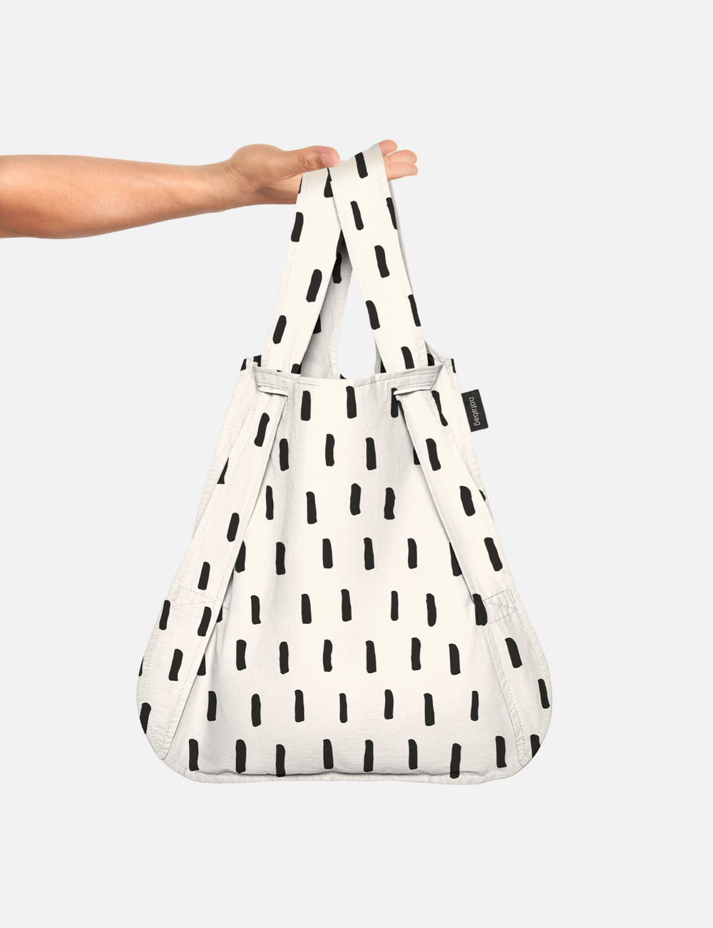 Notabag is the smart combination of a bag and a backpack. It transforms with a single pull on the straps, so you can put it on your back and free your hands.