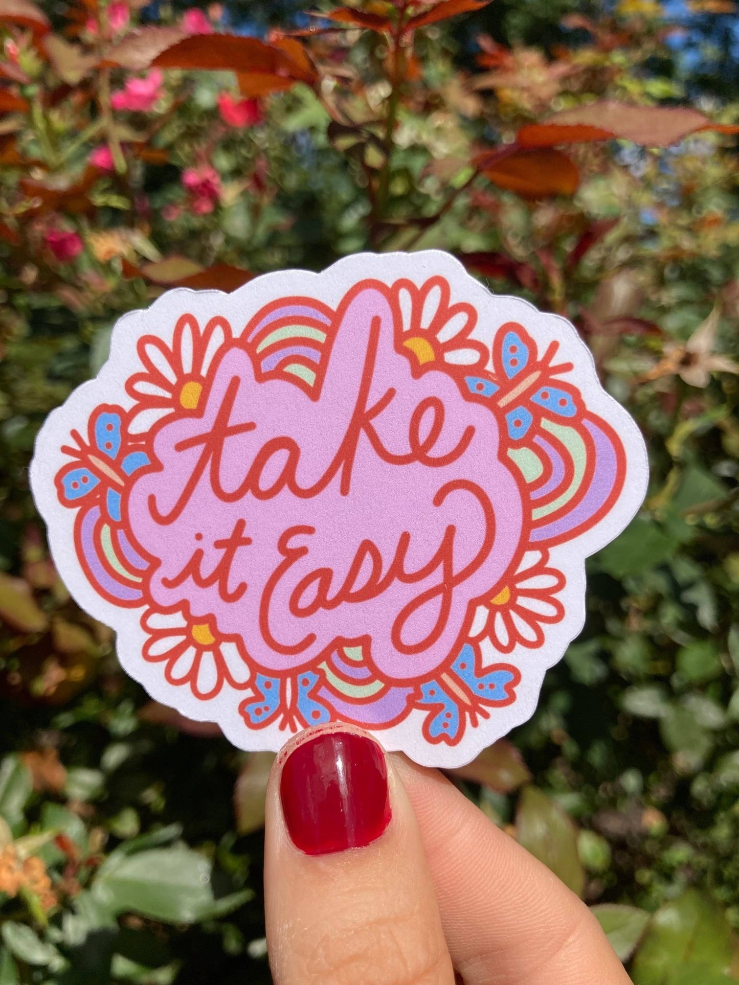 Take it Easy Sticker | Pink Positivity Sticker | Cute Quote Stickers | Pretty Stickers for Laptop or journal | Happy Quote | Frankie Sue