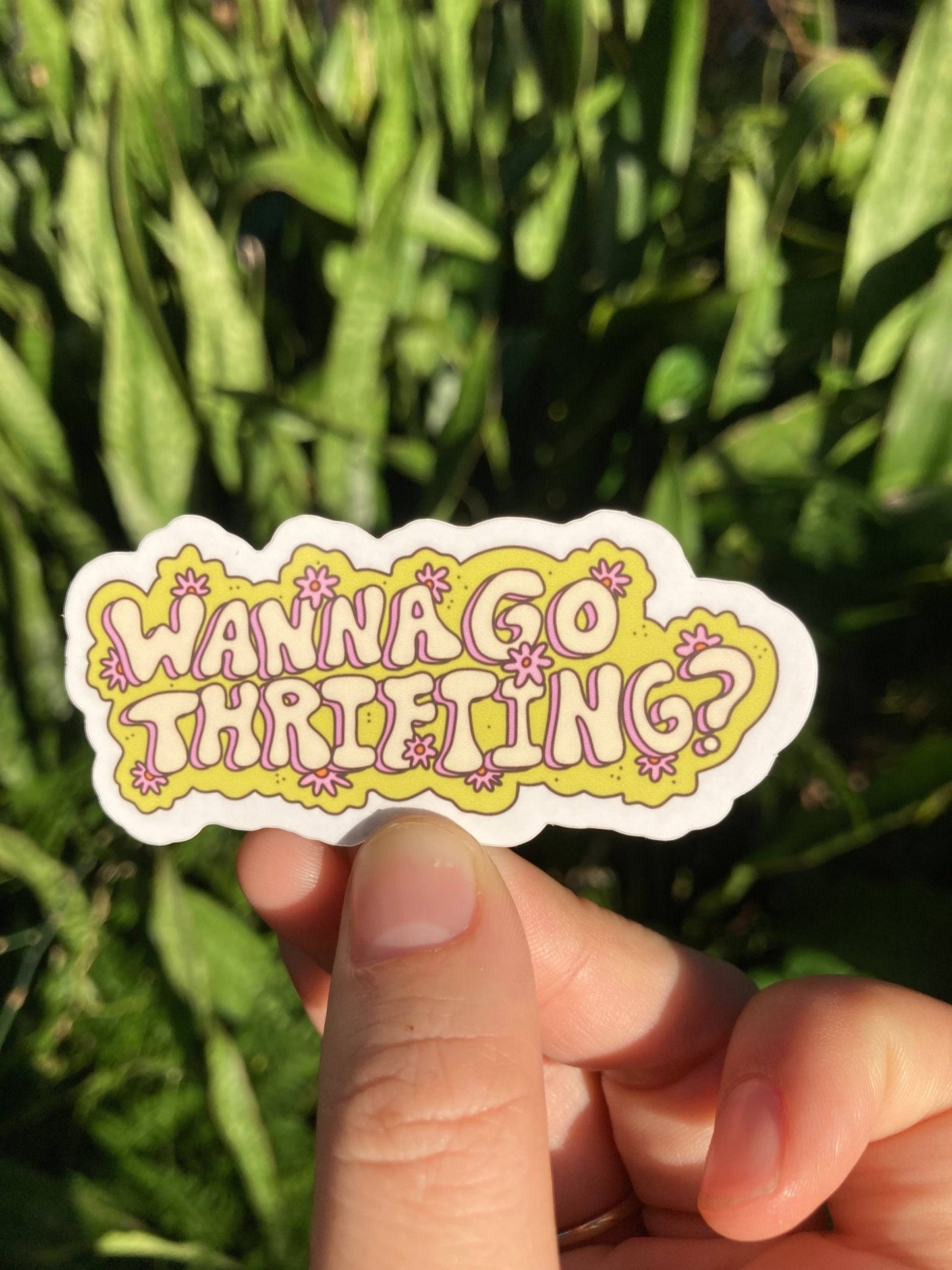 Wanna Go Thrifting? Waterproof Sticker | Retro 70s Thrifting Cute Vinyl Sticker | Handmade Stickers | Thrift Store Sticker | Frankie Sue