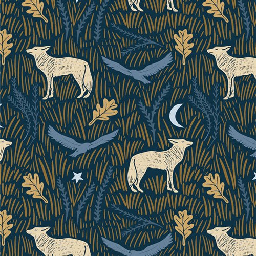 Embark on a mystical journey with "Coyote Hill" by Katie OÕShea. Immerse yourself in the enchantment of nocturnal creatures, starlit skies, and the iconic Californian poppy. This collection captures the magic of flora and fauna through mesmerizing motifs, bringing the allure of the night to life.